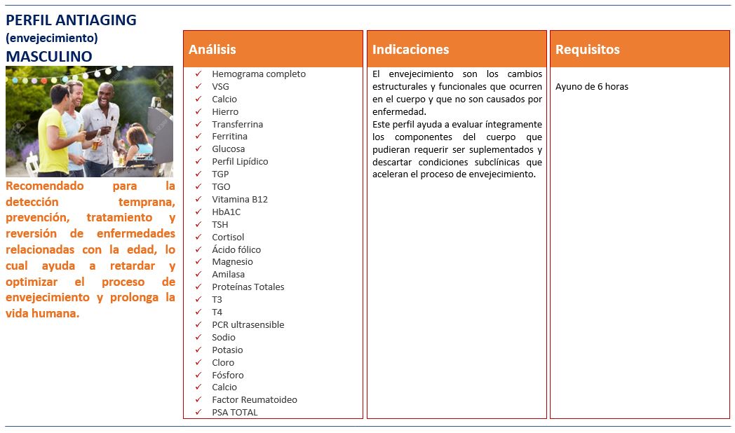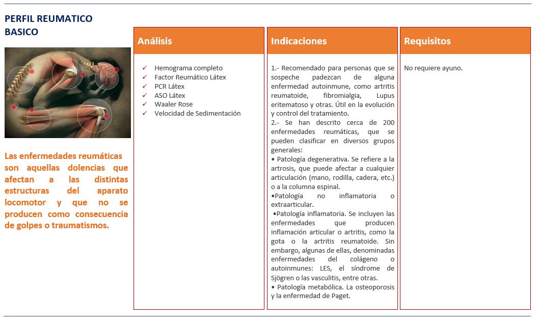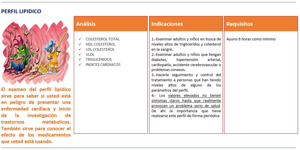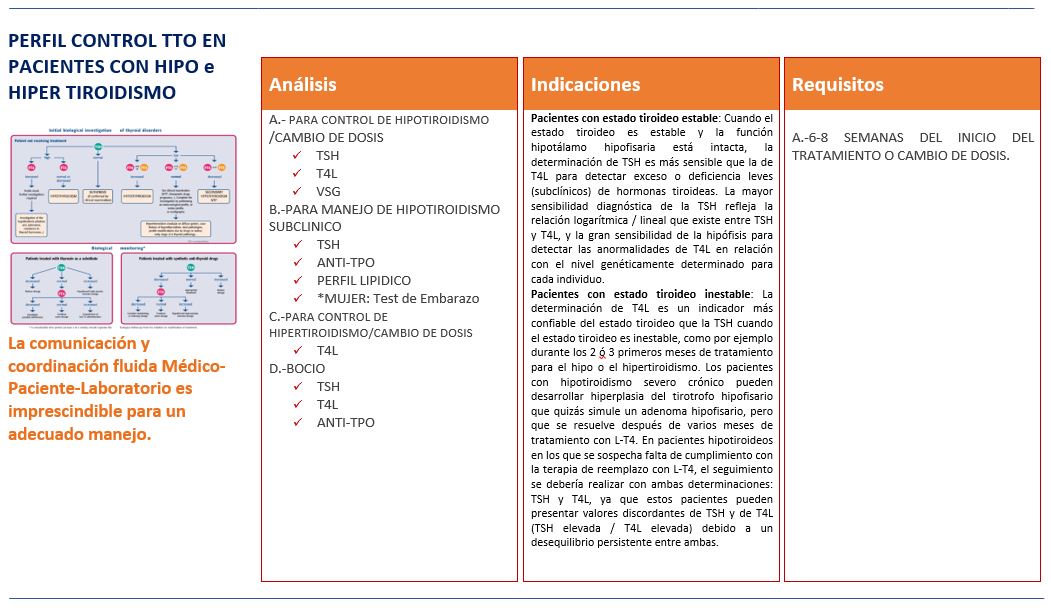 Los perfiles están indicados para controles anuales, en el campo de la medicina preventiva y para controles puntuales cuando un estado de enfermedad lo justifique.